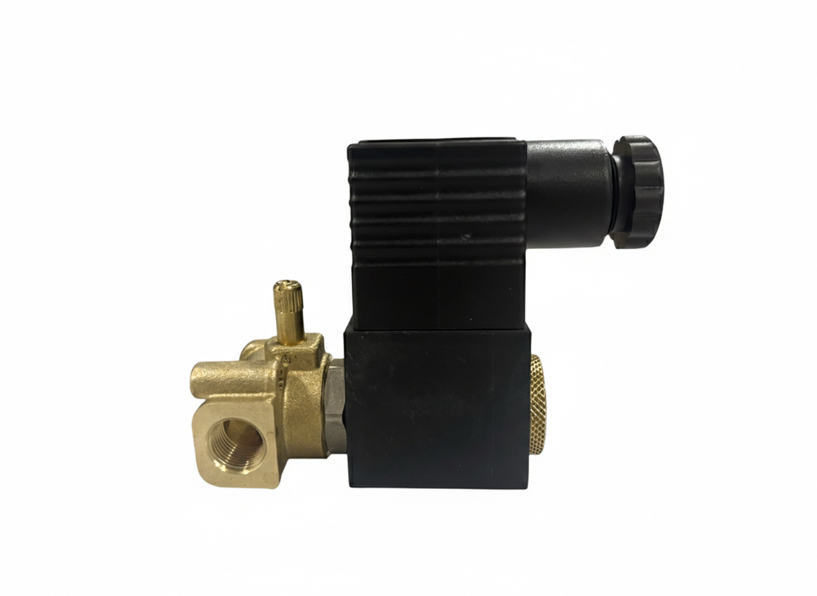 Solenoide 3 vias normalmente fechado (N.C.) 24 VAC com base em latão, indicado para sistemas de irrigação. Permite controle elétrico do fluxo de água, operação confiável, resistência à pressão e durabilidade em aplicações agrícolas.